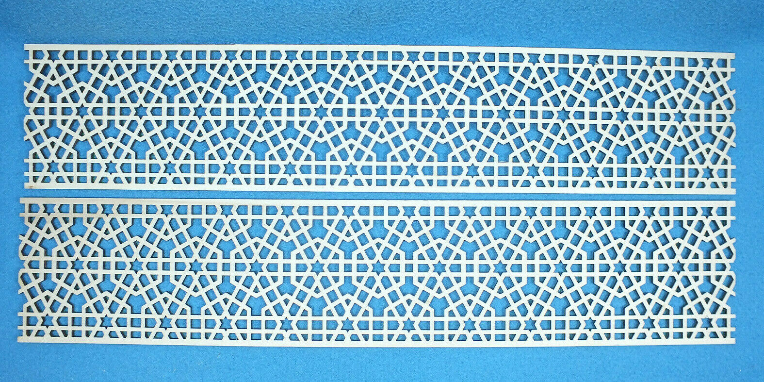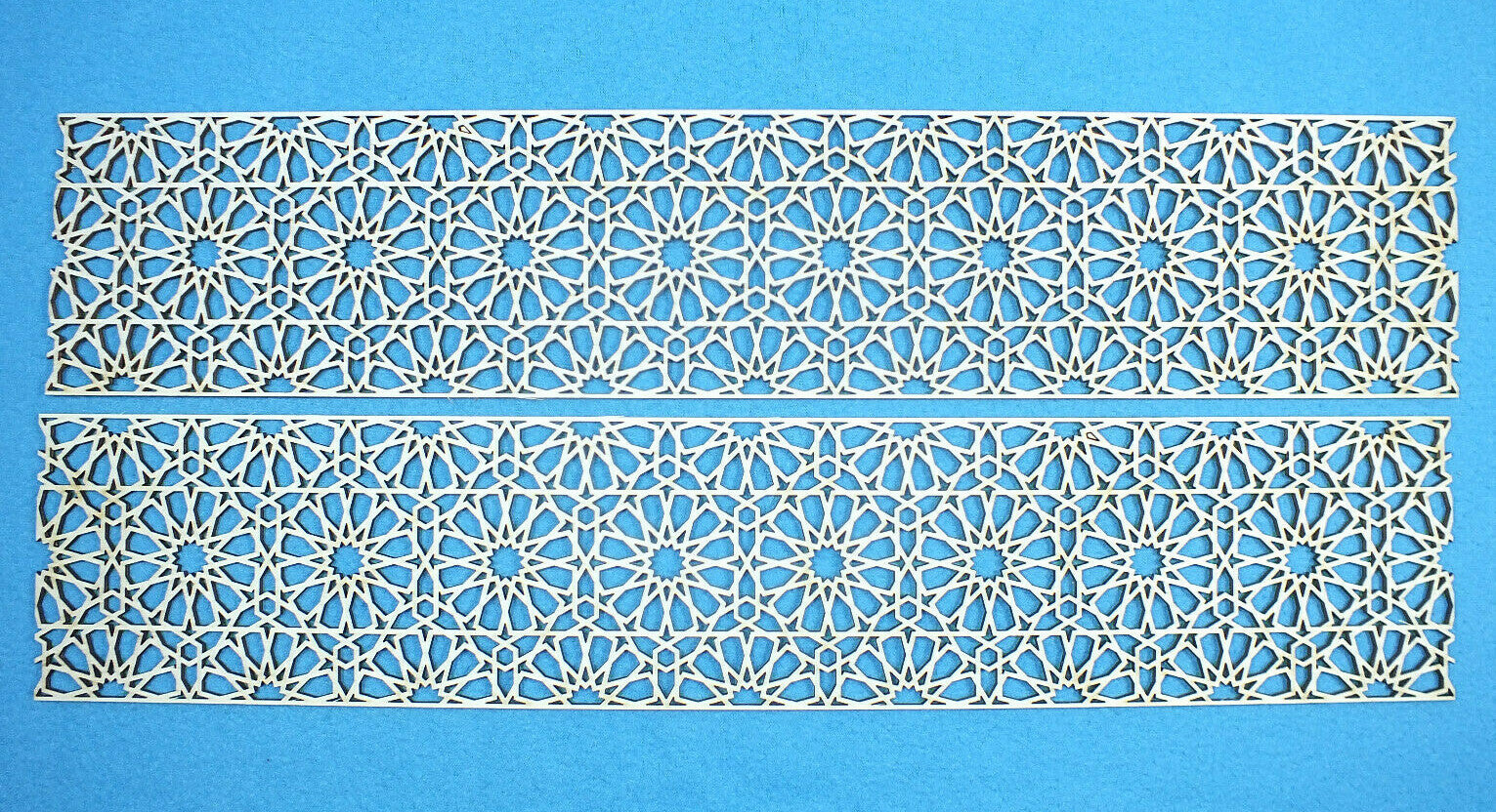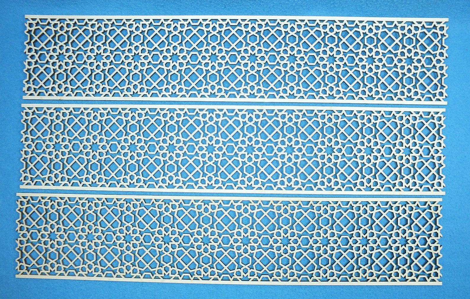 Die feinen und filigranen Bordüren werden aus 3 mm starkem Sperrholz gelasert und können beliebig lang aneinandergereiht werden.