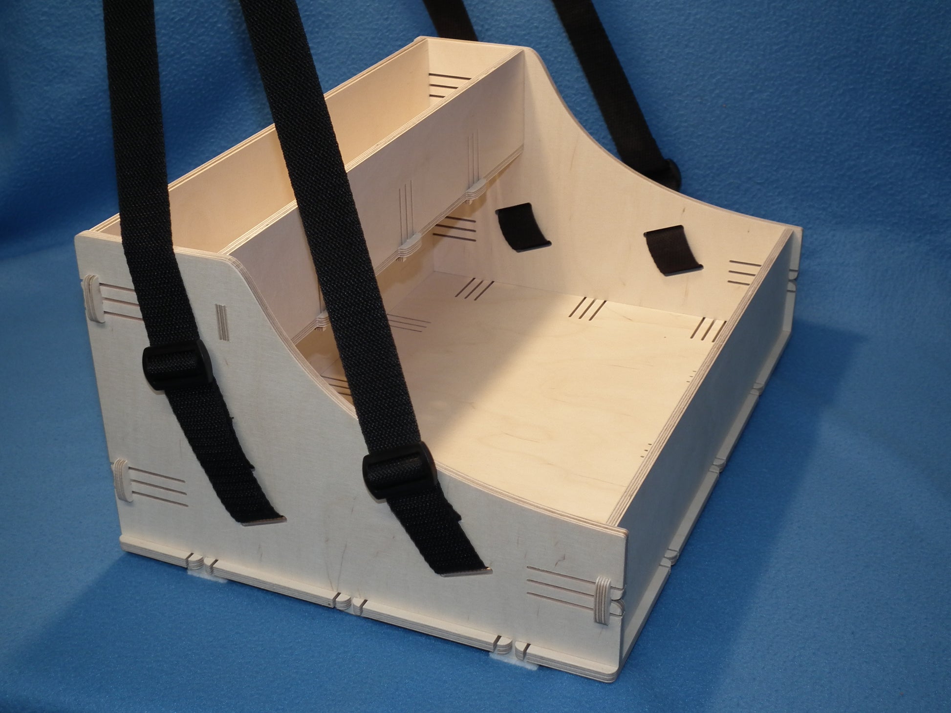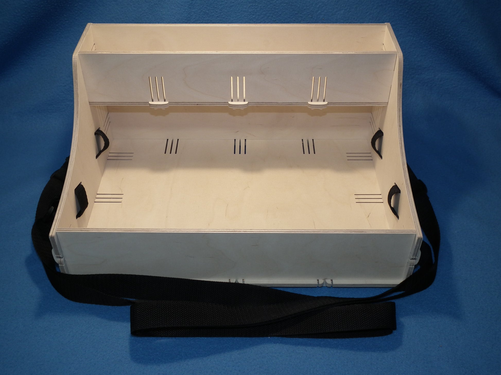Durch unsere innovative Clicktechnologie wird der Bauchladen von uns fertig zusammengesteckt. Es wird weder Kleber, noch werden Nägel oder Klammern beim Zusammenbau verwendet.